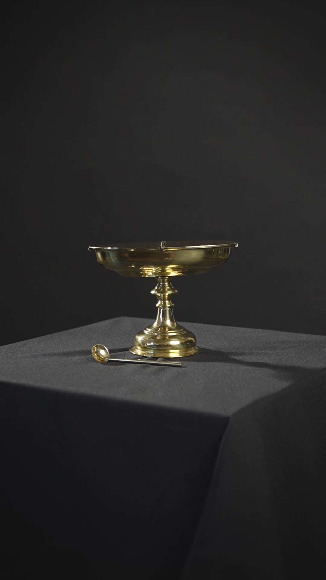 Elegancka łódka na kadzidło wykonana została z wysokiej jakości blachy mosiężnej, pokrytej szlachetnym złotym wykończeniem. Jej prosta, pozbawiona zdobień forma nadaje całości subtelny i ponadczasowy charakter. Stanowi praktyczny element wyposażenia liturgicznego, umożliwiający wygodne przechowywanie i stosowanie kadzidła podczas obrzędów sakralnych.