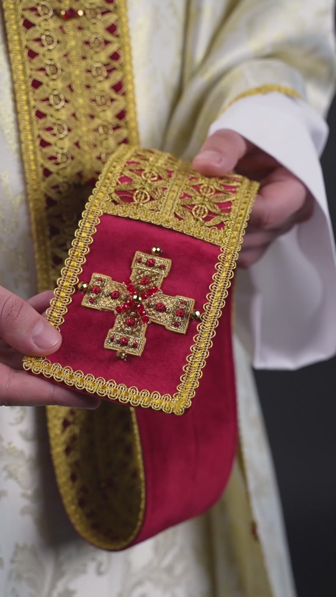 Ten unikatowy ornat to kwintesencja naszego 30-letniego doświadczenia w zdobnictwie haftem. Wykonany z najwyższej jakości tkaniny i ozdobiony ręcznie przyszywanymi naturalnymi kamieniami. Stanowi doskonałe połączenie piękna oraz funkcjonalności.